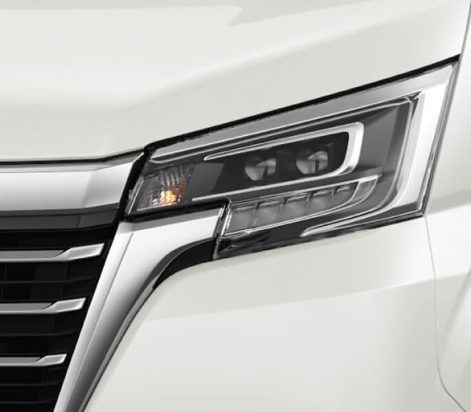 - Cụm đèn trước tích hợp đèn chiếu sáng ban ngày được thiết kế tiếp nối từ lưới tản nhiệt, thể hiện phong cách xứng tầm chiếc xe hạng sang.