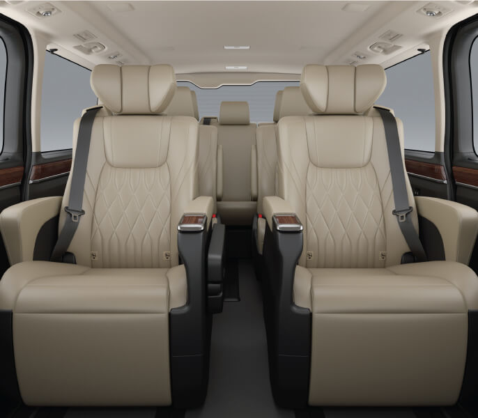 - Hàng ghế thứ 2 với hai ghế độc lập mang đến cảm giác sang trọng cùng chất liệu da cao cấp.