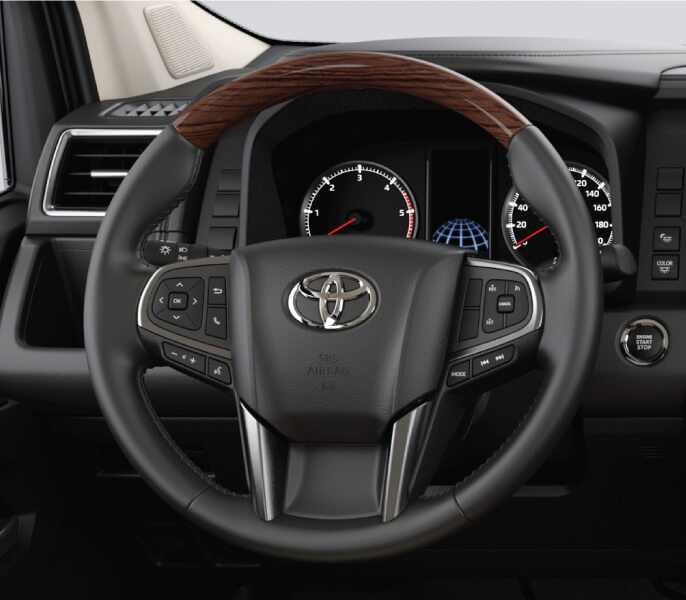 - Tay lái kết hợp chất liệu da và ốp gỗ sang trọng cùng sự phân bổ tối ưu các nút điều chỉnh, màn hình đa thông tin và các tính năng hỗ trợ lái, giúp tăng cường khả năng kiểm soát cho người lái.
