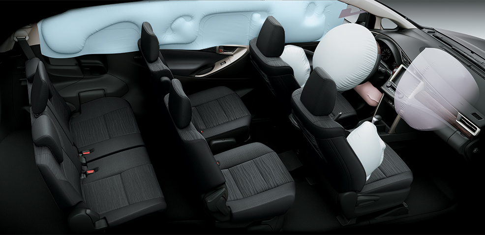 - Hệ thống túi khí được tăng cường tối đa tới 7 túi khí không những bảo vệ tuyệt đối hàng ghế người lái, mà còn cho hành khách phía sau trong trường hợp xảy ra va chạm có thể gây nguy hiểm.