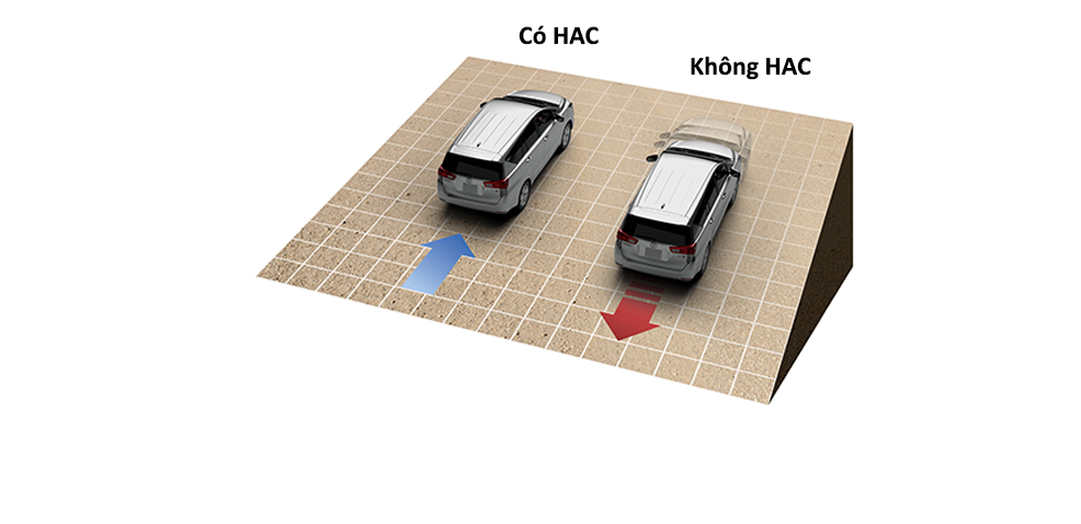 - Hệ thống hỗ trợ khởi hành ngang dốc (HAC) ngăn không cho xe bị trôi ngược về phía sau khi khởi hành trên các địa hình nghiêng.