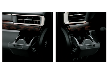- Giá giữ ly phía trước với thiết kế ốp gỗ sang trọng, thuận tiện cho người sử dụng.